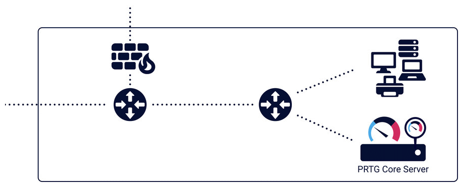 For PRTG Network Monitor, the PRTG core server with the local probe inside the corporate LAN can monitor services and servers in the entire LAN.