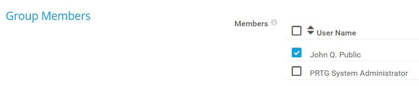 Select the user group whose members can log in to PRTG using their Active Directory domain credentials. The according user accounts have the access rights of the user group you just created.